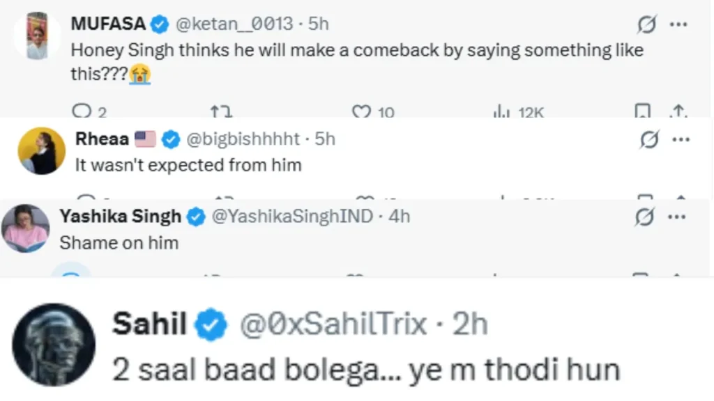 हनी सिंह के बयान पर लोगों के रिएक्शन्स